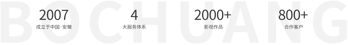 安徽博创广告有限责任公司是安徽影视行业具有影响力的制作公司,成立于2007年,拥有18年影视创作经验,2000+成功案例,800+合作客户,以高端影视制作为核心,以创意为载体,以技术为支撑,为客户提供高效专业的作品。